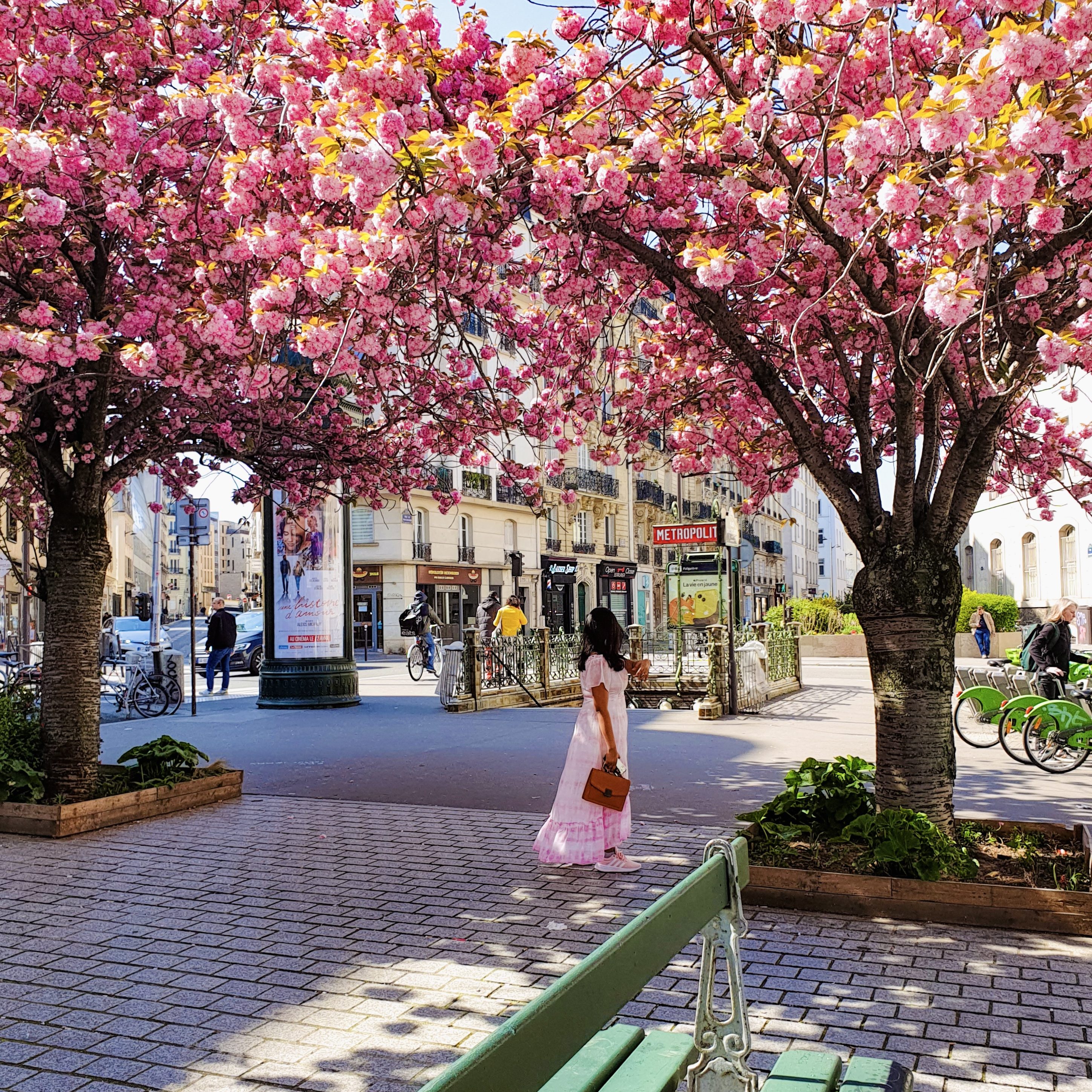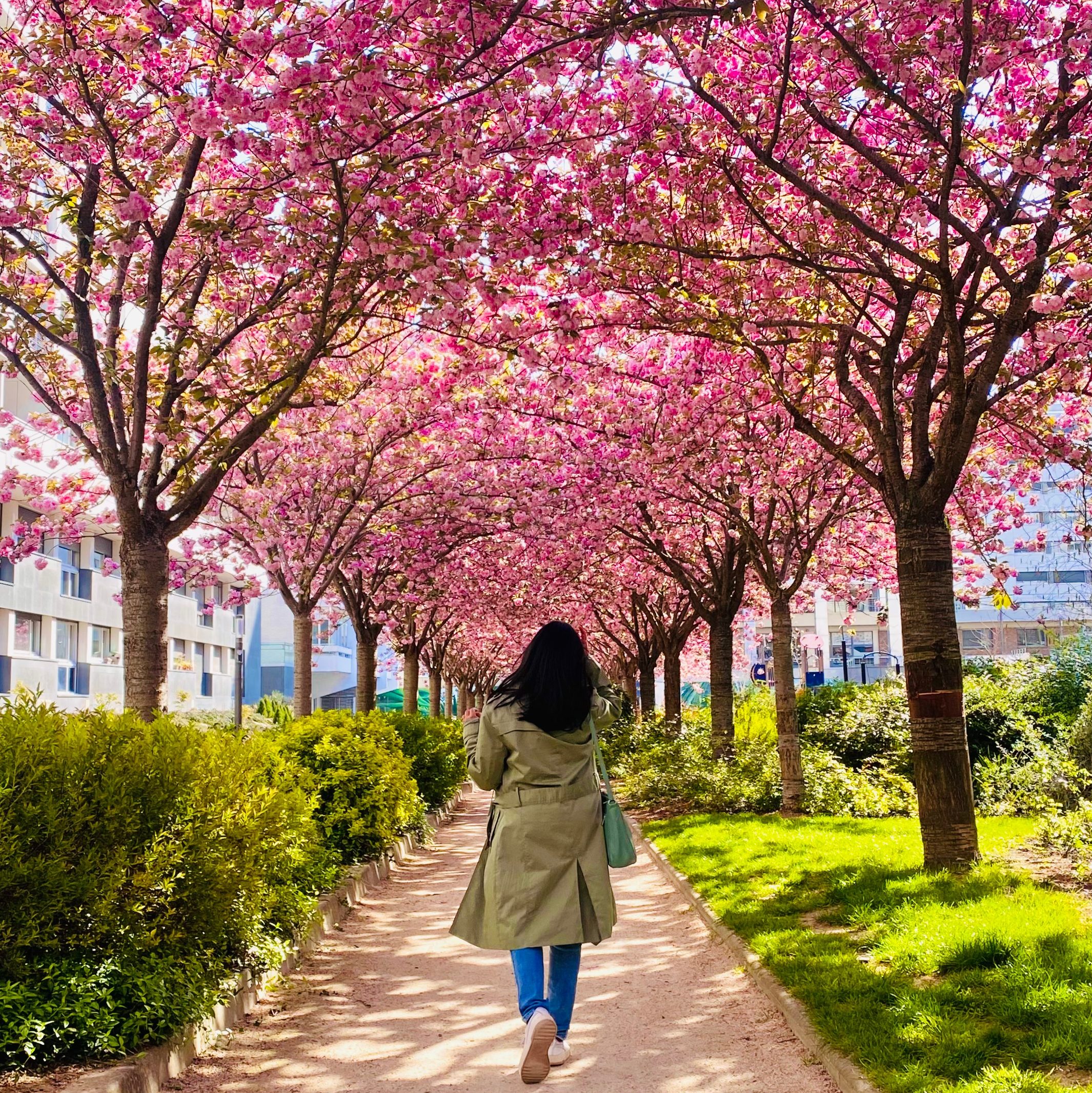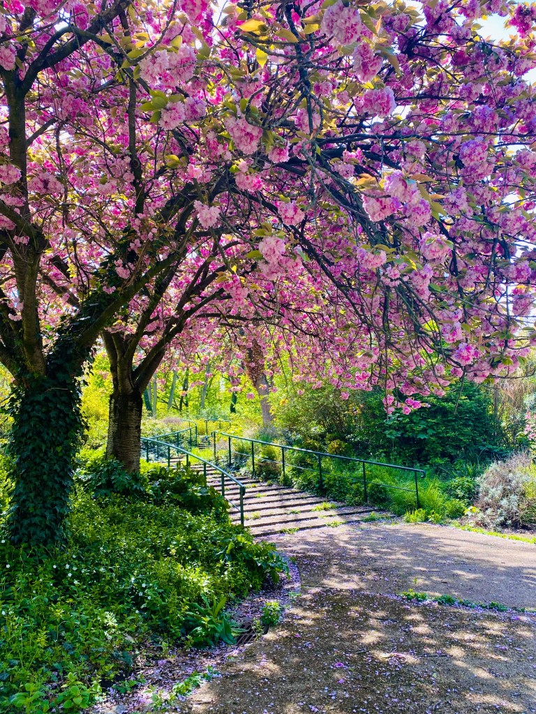 Tucked away behind residential buildings and hidden from the bustling crowds, this is one of the prettiest secret cherry blossom spots in Paris. During spring, I often escape here on my lunch break—just a few minutes’ walk from my office—to enjoy a peaceful moment under the blossoms. The quiet atmosphere makes it a perfect place to sit on a bench and savor lunch beneath a canopy of delicate pink petals.