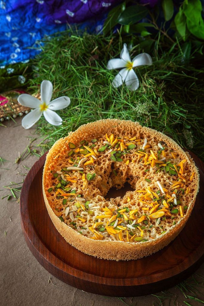There are many places where you can try these items, however during our trip, we found this place called “Thali & More” where we tried the Daal Baati Churma and their Amritsari Kulcha. Both the items were really good and we highly recommend this place for lunch. Pyaaz kachori & Mirchi Bada are another very staple dishes of Rajasthan, you will find these almost at every corner of Jaipur. So we can recommended any street food shop who sell fresh kachoris. We tried these here and both of us really loved it. We tried the Handi Restaurant for the Laal Maas and their iconic Jungli Maas for lunch. This place is usually little crowded with a waiting of about 10 mins, but the food is worth it. Even they have some very good Awadhi food options. Ghewar is THE dessert of Rajasthan and it is something one should not miss if they are visiting here. This blog contains a nice list of places where you can try this dessert.