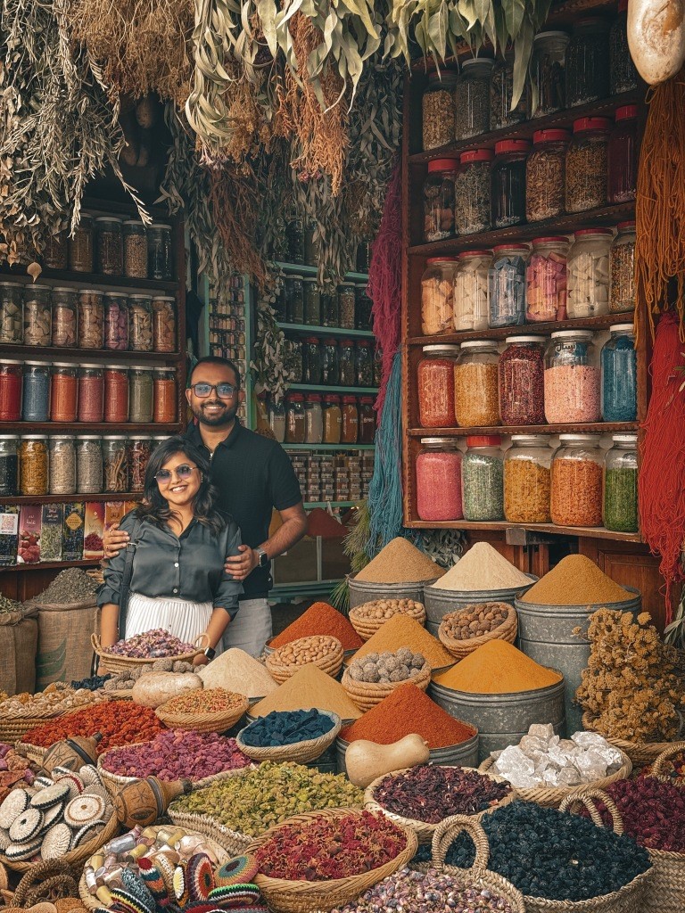 This year, for our anniversary, we journeyed to the vibrant and enchanting city of Marrakech. Nestled in the central areas of Morocco, Marrakech sits near the majestic Atlas Mountains and the doorstep of the awe-inspiring Sahara Desert, just 100 kilometers away. The city boasts a fascinating duality, distinctly divided into two areas: the historic medina, a maze of timeless charm enclosed by ancient walls, adorned with striking clay-colored architecture that exudes warmth and history, and the more modern, cosmopolitan neighborhoods, teeming with energy and life.